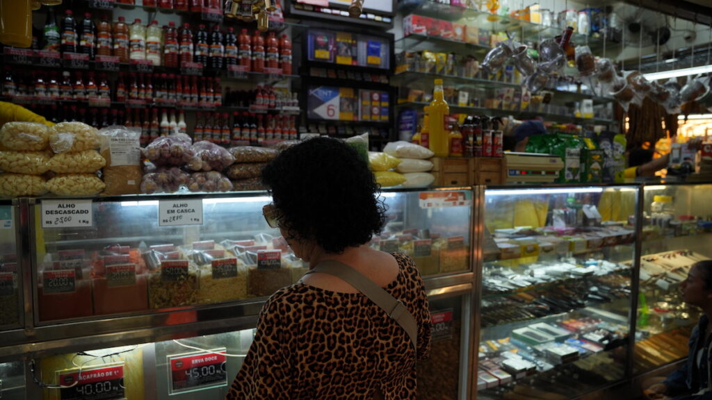 Comércio no Mercado Central em Belo Horiznte, Minas Gerais, vende variedade de temperos, como alho, temperos artesanais e shoyu