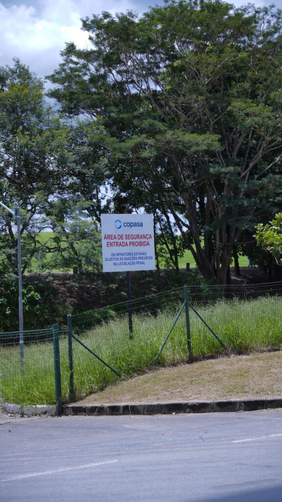 Placa da COPASA, fornecedora de água de Belo Horizonte, com os dizeres “Área de Segurança” e “Entrada Proibida” em Belo Horizonte